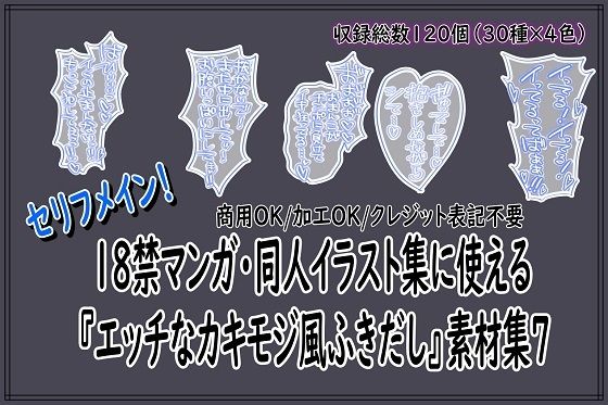 サークル同人活動の素材屋さん作品の注目作。 18禁マンガ・同人イラスト集に使える『エッチなカキモジ風ふきだし』素材集7の魅力や見どころをまとめました。